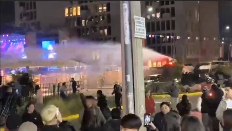 Sin embargo, pasadas las 22.00 horas, un grupo de alrededor de 30 personas comenzó a hacer disturbios en las inmediaciones con el objetivo de ingresar. Por ello, Carabineros interviene y utiliza carros lanza agua y gas lacrimógeno, el que comenzó a proyectarse al interior del recinto, lo que llevó en definitiva a su suspensión.
