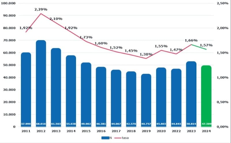 A su vez, las cifras dicen que del total de 47.509 desvinculados, 38.917 son chilenos (tasa de incidencia del 1,4%) y 8.587 son extranjeros (tasa del 3,52%). Y aunque históricamente la tasa de los foráneos que dejan el sistema ha sido más alta, desde 2018 se ha ido reduciendo. Sin embargo, de 2023 a 2024 aumentó levemente en un 0,01%, mientras que la del estudiante chileno bajó un 0,11%.