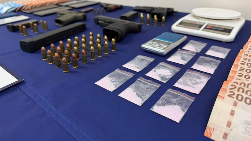 Durante el procedimiento, se logró la incautación de ketamina y cannabis sativa, además de cuatro armas de fuego de diverso calibre, con su respectivo cargador, 41 cartuchos calibre 9 milímetros, cuatro cartuchos calibre 6.35 y seis teléfonos celulares.