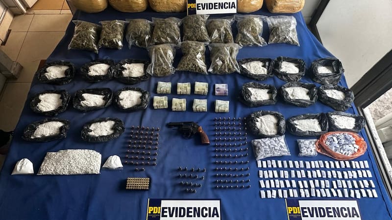 En el operativo, se detuvo a cuatro personas -tres hombres y una mujer- de nacionalidad chilena, sin antecedentes. Además, se incautaron más de 9 kilos de cannabis sativa, dos plantas de cannabis, 2 kilos de cocaína base y 435 gramos de clorhidrato de cocaína, con un valor total de más de $ 61 millones.