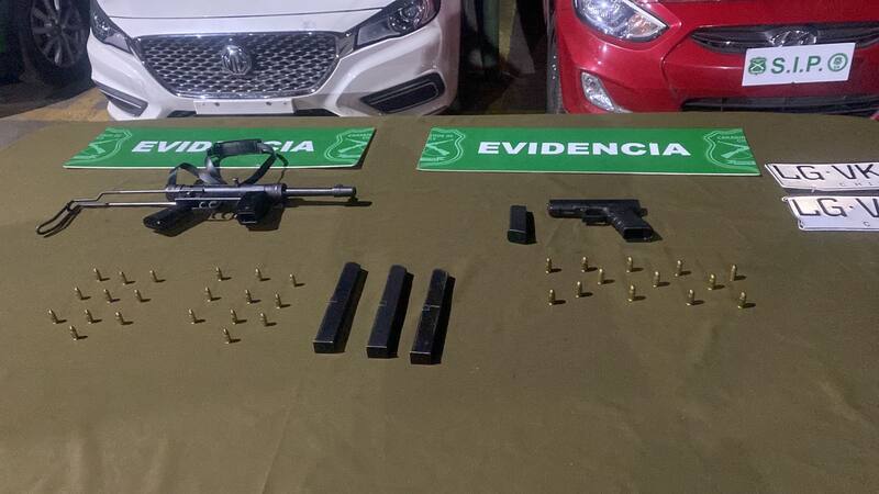 “El día de hoy se logró detectar un vehículo con tres sujetos sospechosos y se procedió a hacer un control a estos sujetos, los cuales se dan a la fuga y son rápidamente detenidos por carabineros, sorprendiendo en el vehículo un armamento tipo subametralladora la cual estaba apta para ser disparada”, aseguró el coronel Araya, quien añadió que los aprehendidos tienen un amplio prontuario policial por delitos como robo y robo con intimidación.
