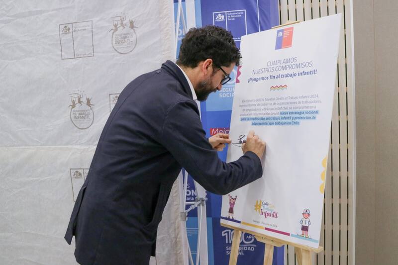En el marco del Día Mundial contra el Trabajo Infantil, el ministro (s) del Trabajo, Giorgio Boccardo, firmó este miércoles un compromiso para la construcción de una nueva política que aborde esta problemática, que todavía afecta a miles de niños y niñas en el país.