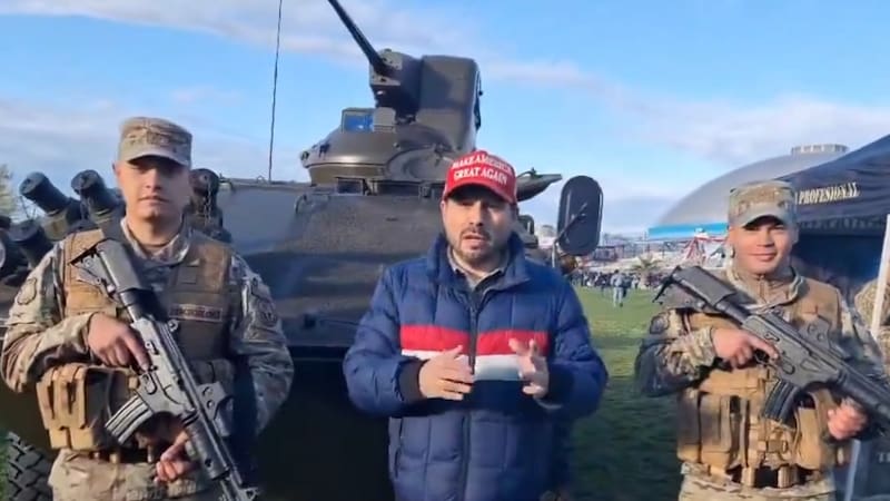 En el registro, grabado por el exbarrista de Colo Colo y compartido en sus redes sociales, salen dos miembros del ejército y un carro tipo Mowag. En él, el líder del Team Patriota realiza un llamado a incorporarse a las Fuerzas Armadas.
