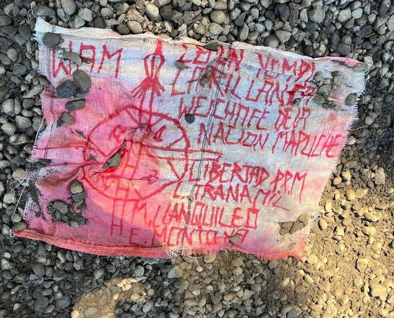 “Libertad a los PPM M. LLanquileo, E. Montoya, L. Tranamil, N. Queupil. Nuestro objetivo es WALLMAPU” y “Lienpi. Lemun. Catrillanca. Weichafe De La Nacion Chew Muley Mapuche. J. Ceuñil Wam. No las condenas. Ni las muertes detendrán la resistencia”, decían parte de los lienzos dejados por los sujetos que reivindicaron los ataques incendiarios que reactivaron la violencia en la Macrozona Sur.