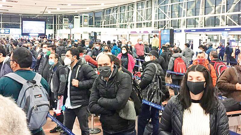 Largas filas para pasar por aduanas sanitarias en aeropuerto de Santiago