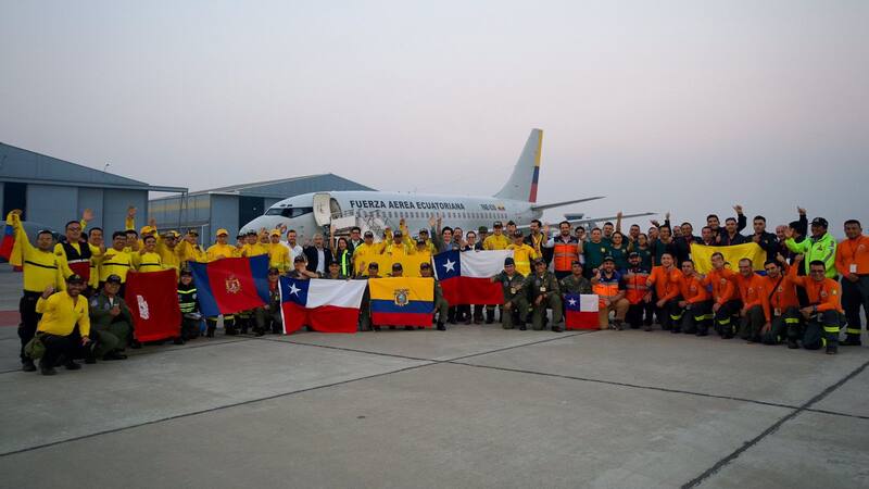 Tras el llamado, la ayuda internacional comenzó a llegar, es así como la tarde del jueves se sumaron a los equipos de combate 58 brigadistas ecuatorianos que fueron recibidos por el ministro de Relaciones Exteriores (s), José Miguel Ahumada.