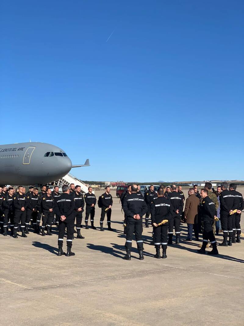 El domingo un grupo de 50 brigadistas españoles llegaron a Santiago, quienes se trasladaron a la Región del Biobío el martes, donde fueron recibidos por el ministro de Obras Públicas y la delegada presidencial del Biobío, Daniela Dresdner.