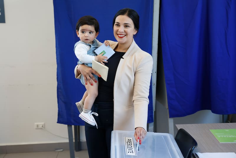 La diputada Karol Cariola (PC) acude a votar junto a su hijo Borja