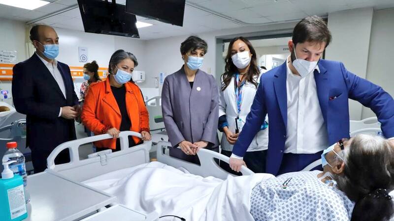 En el marco del Día del Trabajador, el Mandatario llegó acompañado de los ministros del Trabajo, Salud y Segpres para visitar a trabajadores hospitalizados en el centro de salud.