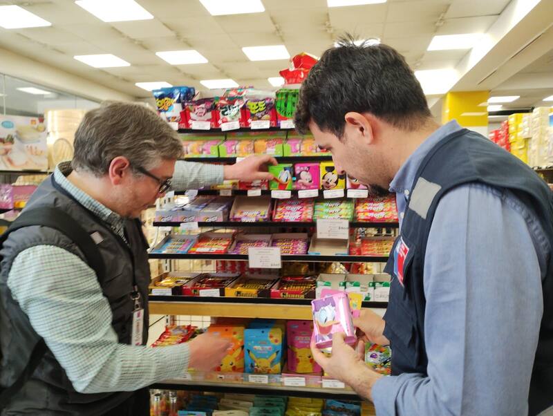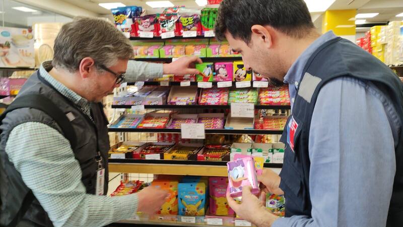 “También hemos encontrado productos altos en nutrientes críticos con ganchos comerciales como figuras, juguetes o caricaturas dirigidos a niños o niñas menores de 14 años, lo que está completamente prohibido en Chile, pues no cumplen la Ley del Etiquetado Nutricional”, continuó.