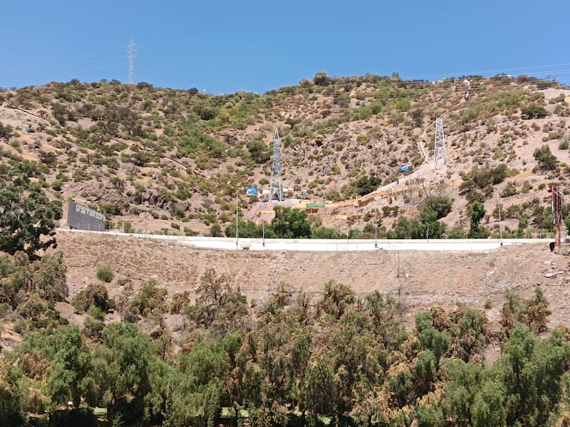 Hoy, el primer teleférico de uso público del país tiene diversos trabajos paralelos, como la fundación de la torre N° 16 ubicada en el sector de La Rinconada con Santa Clara, en Huechuraba, que formará parte de su recorrido. A algunos metros, a los pies del cerro, desde el MOP explican que se inició el traslado de servicios de la línea de alta tensión debido a que se cruza con el recorrido del teleférico, por lo que se demandó su soterramiento.