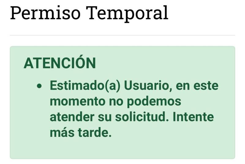 Según detallaron por medio de imágenes, al intentar sacar su permiso correspondiente, reciben el mensaje “En este momento no podemos atender su solicitud. Intente más tarde”.