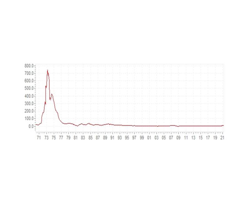 El problema inflacionario llega a su punto máximo en la primera mitad de los 70, con un promedio anual de 300% y con un máximo histórico cercano a 600% en 1973. Los gobiernos financiaban el gasto público imprimiendo billetes. Esto cambió con el ajuste fiscal de la segunda mitad de los años 70, y luego a fines de los 80 la autonomía del Banco Central solucionó ese problema en forma permanente.
