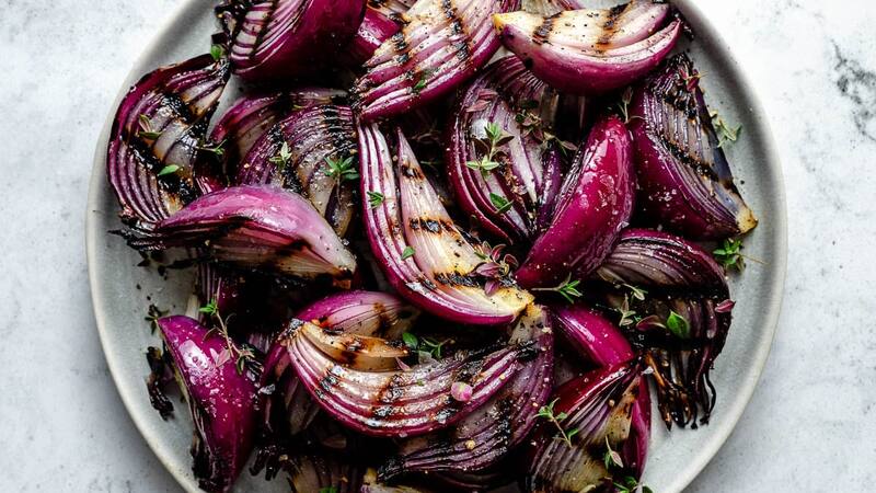 Cebollas moradas dulces a la parrilla: con salvia, nueces y miel