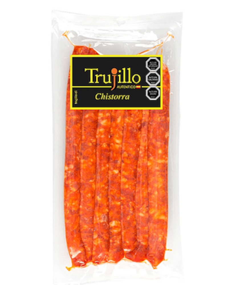 Original del norte de España, la chistorra ya lleva un buen tiempo produciéndose y comercializándose en Chile. Además de la carne de chancho, tiene un alto porcentaje de grasa. Se suele consumir bien fresca y se acostumbra condimentar de manera muy simple, solo con sal, ajo y una buena cantidad de pimentón, lo que le da ese color rojo intenso. Su frescura, más su delgado volumen (casi como una salchicha), la hacen ideal para tirar a la parrilla, siempre a fuego moderado, cocinándola rápidamente, perfecta para calmar el hambre de los comensales impacientes.