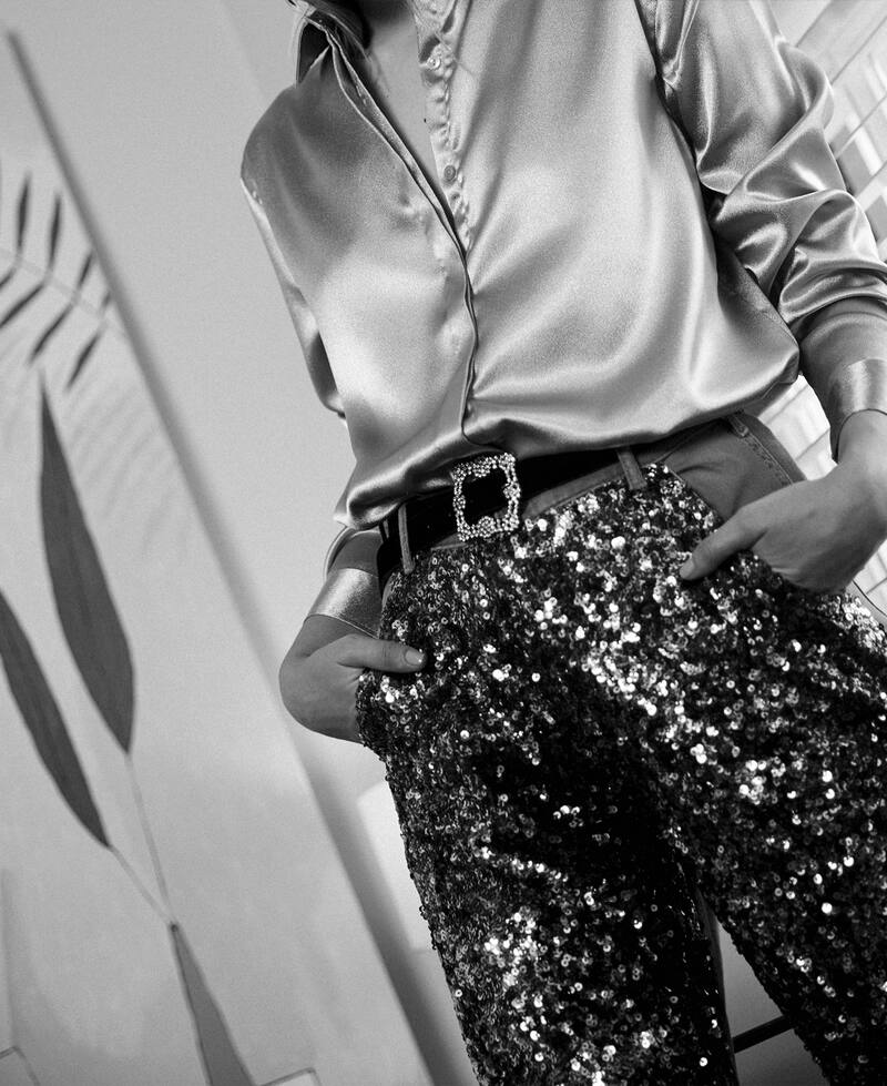 Suéter, $ 49.900, Mango. Pantalón River Island, $ 52.900, Ripley. Sandalias, $ 69.900, Nine West. Aros, consultar precio en tienda Tiffany & Co.[/caption]