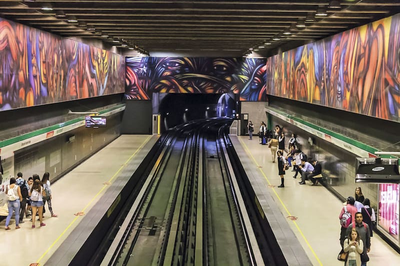 De los cientos que ha hecho, el mural en la estación Parque Bustamante es para él uno de los más importantes. Quizás porque le resultó después de cuatro intentos de pintar algo en el Metro. Para prepararlo, se encerró durante una semana en el departamento de un amigo en París, a preparar los bocetos.[/caption]