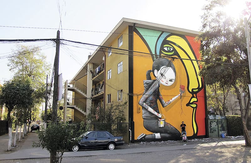 En este mural –parte del Museo a Cielo Abierto de San Miguel– convive el dibujo típico de la Brigada Ramona Parra, hecho por González, y la creación más cercana al grafiti del artista urbano francés Seth Globepainter.[/caption]