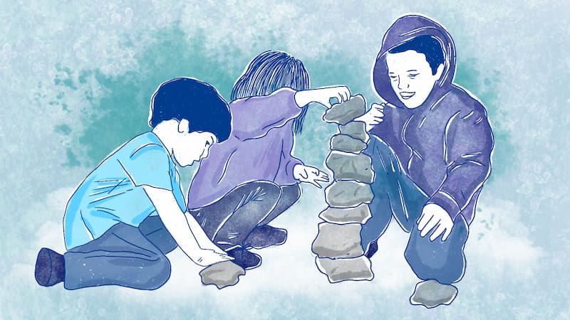 Este año la municipalidad puso carpas en la calle para vacunar contra la influenza, así que aproveché la instancia y llevé a mis tres hijos. Obviamente había una fila y teníamos que esperar. Entonces mis niños se pusieron a jugar, corrían, saltaban y después de un rato, vieron que un árbol tenía varias piedras chicas en su base. Empezaron a moverlas, a poner una encima de la otra, se les caían y volvían a armar sus torres.