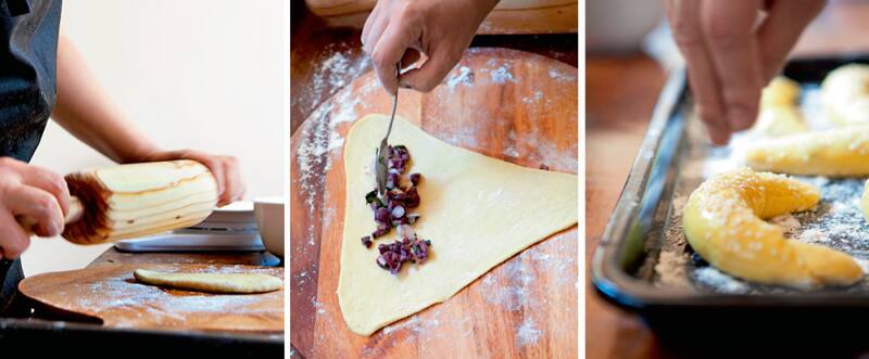 Preparar el relleno. En otro bol mezclar las aceitunas, cebolla, hierbabuena y pimienta. Reservar.
