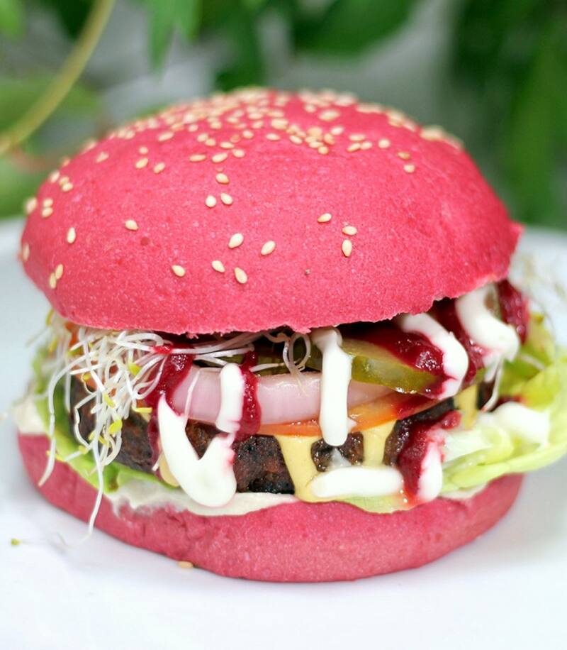 Pan de betarraga, con hamburguesa a base de porotos negros y quínoa, acompañada de lechuga, tomate, mostaza, queso de castañas de cajú, pepinillos y cebolla morada. O una ensalada de arroz basmati, garbanzos, betarragas, camote, brócoli y repollo prensado. Estas y otras son las opciones que se pueden encontrar en Adhana (@adhanacl), restorán de comida consciente que despacha a domicilio solo en Providencia, pero que desde hace pocas semanas habilitó mesas para comer en el lugar.