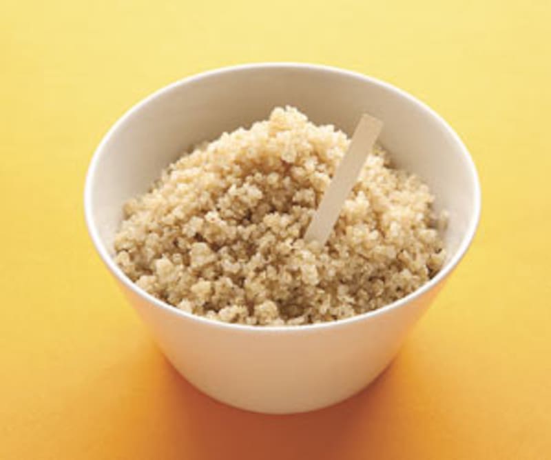 1/2 taza de quínoa inflada sin azúcar (pipoca de quínoa) con 200 ml de leche de almendra y una fruta, como kiwi, manzana verde o naranja. A elección, agregar un pan integral de centeno sin tostar con la mitad de una palta pequeña sin aliñar. Tomar un jugo de apio y perejil (agua con un tallo de apio más media taza de perejil picado) o uno de acelga y espinacas (media taza de hojas picadas de acelga y la otra mitad con hojas de espinaca).