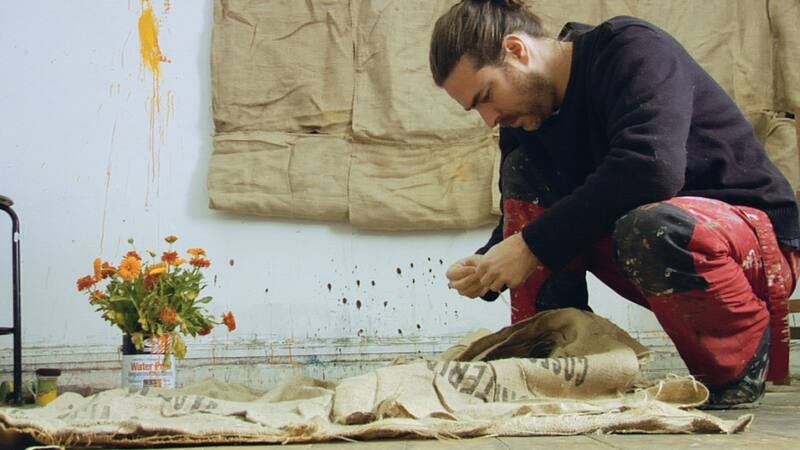 La exposición incluye 50 obras en distintos con formatos y materiales, donde hay paisajes bucólicos pintados en posters callejeros; máscaras hechas con hojas de libros y diarios, y distintas pinturas hechas sobre mapas, madera quemada y sacos de arpillera.
