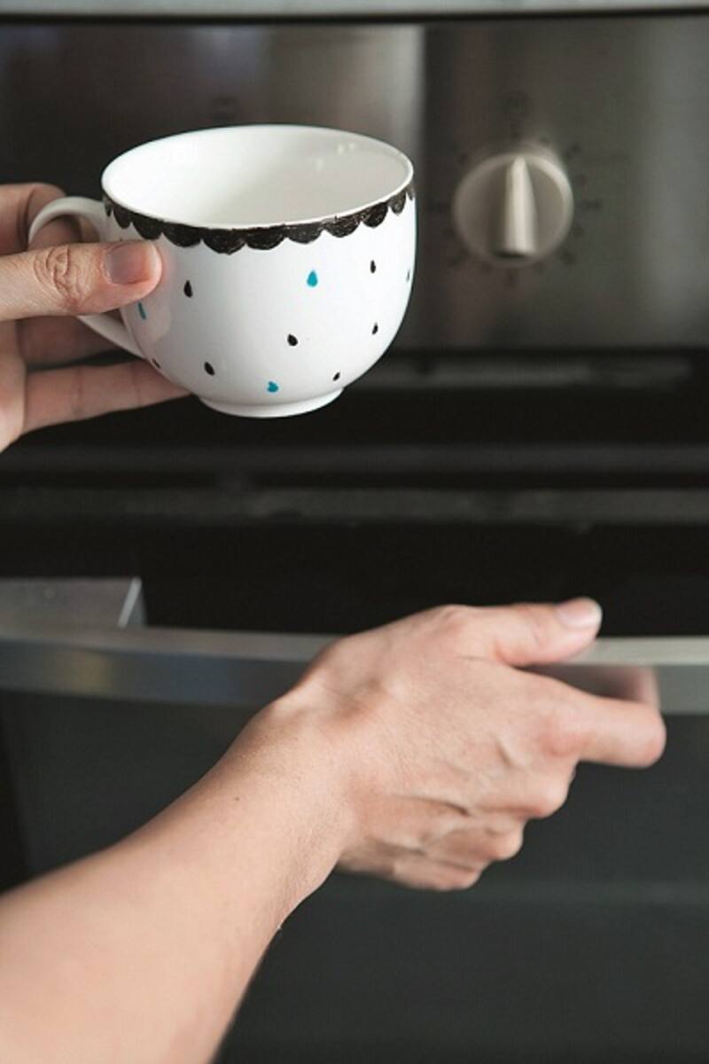 2. Al tener el dibujo listo dejarlo secar por 24 horas. Luego meter al horno por 35 minutos, dejando que la temperatura suba hasta los 150°. Quitarlo cuando esté completamente frío.