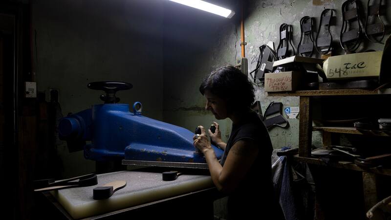 En ese momento decidió reencontrarse con el taller de su padre: modelista y fabricante de zapatos de mujer, quien para entonces tenía 70 años de edad y 40 de experiencia en el negocio del calzado. Don Luis González es un testimonio de la historia de la industria del calzado en Chile. Sector que tuvo un notable desarrollo, pero se desmoronó con la apertura comercial de finales de los 80. Desde entonces, mantenerse en el rubro “ha sido una tarea quijotesca” para él, dice su hija. Las importaciones continúan y la desaparición de las fábricas de calzado se lleva por delante la cadena de producción de insumos y los maestros zapateros. El taller de su padre, que a principios de los 2000 llegó a tener 25 personas trabajando, hoy mantiene a cuatro, todos adultos mayores de entre 60 y 70 años, más su padre, que ya tiene 80.