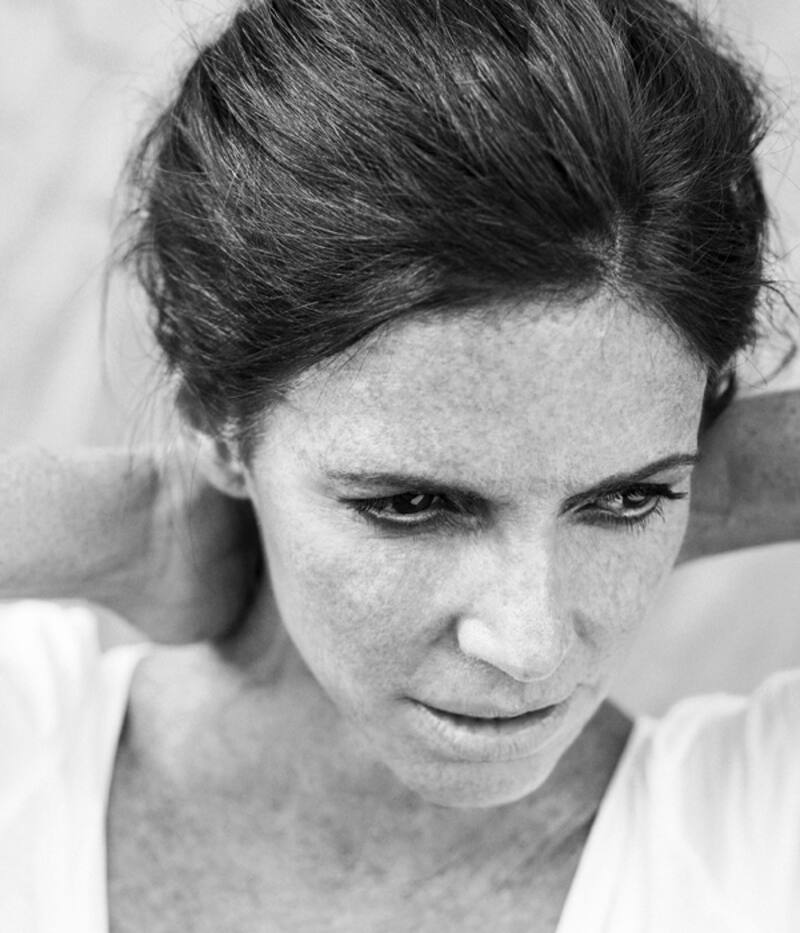 "No las escondo con el maquillaje. Son parte de mí. De hecho, cuando veo la foto que me hicieron cuando salí de cuarto medio, no me reconozco. El fotógrafo me tapó la cara con base para eliminar todas las pecas", dice Cristel Le Blanc, 49 años, diseñadora.
