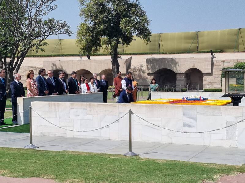 Luego, enfocó su primera jornada en actividades de carácter protocolar, con encuentros relacionados a las principales figuras políticas de India. La primera cita fue con el ministro de Relaciones Exteriores, Subrahmanyam Jaishanka. Posteriormente, fue al Raj Ghat, espacio donde se encuentra el memorial en honor a Mahatma Gandhi, uno de los líderes de la independencia de India en el siglo XX, junto a su comitiva.