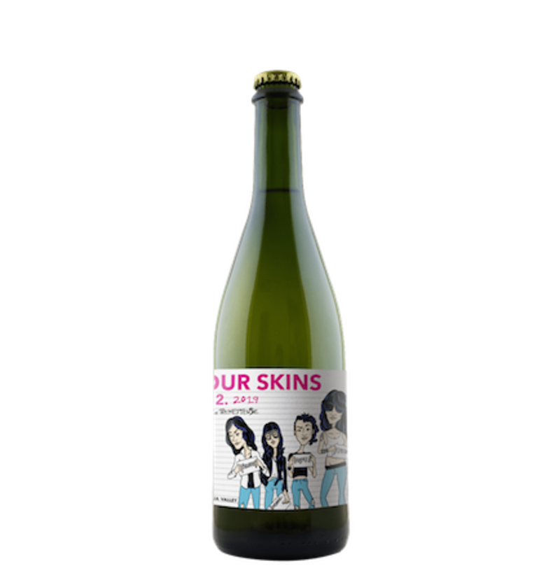 Podría ser la carátula de un disco de los Ramones. Esa factura punk, desenfadada, rebelde e inusual de Four Skins 2019, también de la bodega L’Entremetteuse, retrata una mezcla exquisita de cuatro variedades blancas —marsanne, roussane, viognier, semillón— con mucho carácter y personalidad, hechas con sus pieles (de ahí su nombre), por lo que se nota un vino turbio y ambarino. Esto hace que su boca tenga mucha fuerza, una presencia de taninos —sensación de cierta aspereza en boca— más marcada, en un fondo seco, bajo en acidez y delicioso, de mucha persistencia en boca. Como si tomaras un sorbo y el vino hiciera eco en tu paladar y ese sonido se quedara ahí, varios segundos, haciéndote salivar. Y haciéndote recordar que aquí todo es diferente, que el viaje es precisamente fuera del camino gracias a los personajes de la etiqueta, el nombre, la factura e incluso la ausencia de corcho, porque está sellado con tapa corona, como las cervezas y algunas sidras. Un vino que seguramente será un bonus track en tu fin de semana.