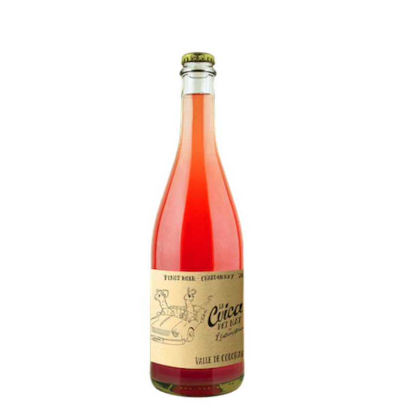 Un descapotable de patente OOHHH con dos llamas pelo (¿lana?) al viento y anteojos negros, al más puro estilo Thelma y Louise, advierten el contenido: un pet nat —en francés, pétillant naturel, es decir, un vino natural ligeramente espumoso— que viene a desordenar la industria, como ya es costumbre en esta bodega: L’Entremetteuse. El nombre salió porque, cuando comenzaron a elaborar este tipo de vinos en la bodega, al principio se hacía un pet nat en base a la cepa syrah, pero luego (como este 2019) mutó a una mezcla de chardonnay y pinot noir, que es la base de la champaña. Ergo… ¡era la cuica del grupo! Este pet nat rosé de alcurnia tiene una burbuja pequeña y puntiaguda, abundante y de explosiva efervescencia, no dulce pero tampoco del todo seco. Un rosado intenso te hace pensar en una extracción relativamente larga del pinot, escapándose de esos estilos pálidos típicos de la Provenza. Pues sí: aquí nada es típico.