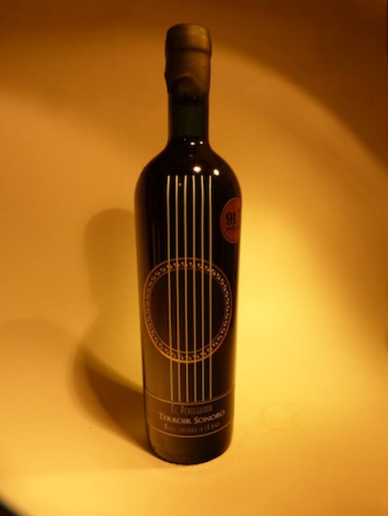 La bodega Terroir Sonoro no toma el nombre porque sí. Aunque suene a metáfora, en el proceso de crianza los vinos son sometidos a bandas sonoras particulares, una para cada uno, y reproducidas con método de inmersión en cada barrica, todo el día, a toda hora. Esto hace que exista un estímulo con frecuencias propias para cada uno, lo que les ayuda a definir su carácter. Aquí estamos frente a etiquetas que transforman, literalmente, la botella en guitarra, como El Perseguidor, un malbec centenario “en la menor”. Aquí, el vino se presenta en clave más cálida, se siente la madera haciendo coro pero a la vez dejando que la fruta cante con todo el pulmón que tiene: fruta negra, fresca y rica, concentrada y profunda, incluso con una nota de grafito deliciosa al final de boca. No es un vino musculoso, de taninos ásperos y tensos. Por el contrario, hay balance, refinería. Y lo hay más en su versión El Apellinao, que es un vino tinto de cepa país “en re mayor”. Más fineza, delicadeza, frescor. Una nariz fragante, casi explosiva, de arándanos recién cosechados, para una boca aguda que susurra, pasando de la guitarra a un dulce y brillante violín.