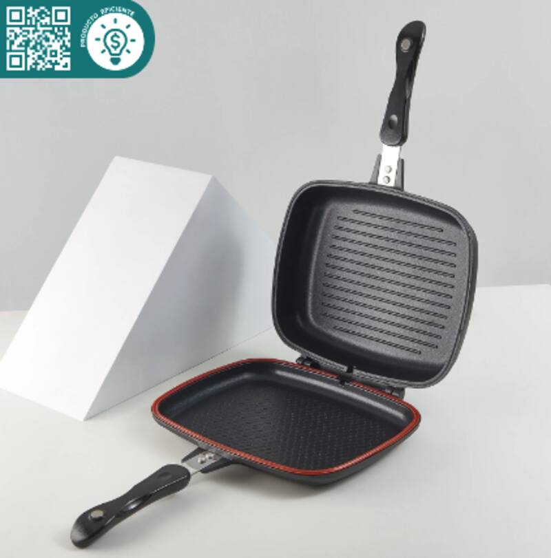Sí, a quién no le ha dado lata hacer una tortilla por el riesgo a que se pegue o caramelizar una cebolla porque se demora mucho o cocinar una pechuga de pollo o cualquier cosa, finalmente, porque les quedan muy secas, poco jugosas y todo alrededor queda sucio y salpicado. Anticocineros del mundo, aquí está su salvación: un sartén doble y antiadherente —con diseño bastante simpático—, capaz de preparar todo tipo de cosas de forma más rápida, limpia y fácil. Se puede usar por los dos lados y al taparlo la cocción es más acelerada y con menos pérdida de humedad. Se acabaron las excusas.