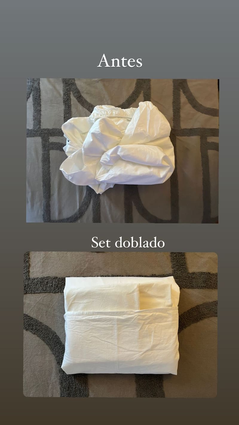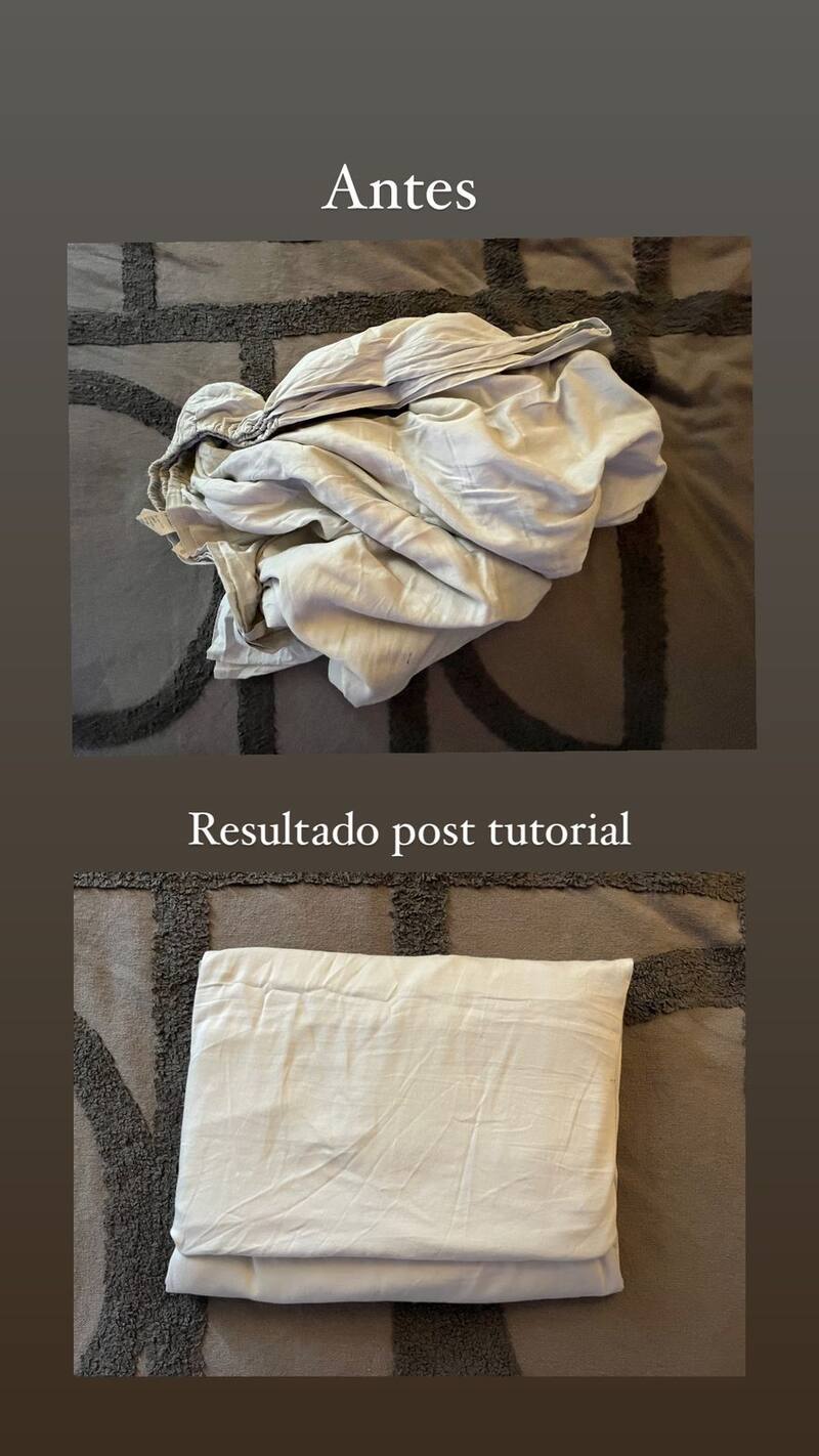 Internet está lleno de tutorales de doblados de sábanas. Sin embargo, el de la influencer de organización Natasha Swingler es un híbrido de las técnicas de doblado que ya describimos. Es muy rápido pero a la vez entrega un resultado sofisticado, ya que queda todo agrupado en un solo paquete. Es un nivel de doblado de sábanas supremo, pero totalmente replicable después de un poco de práctica.