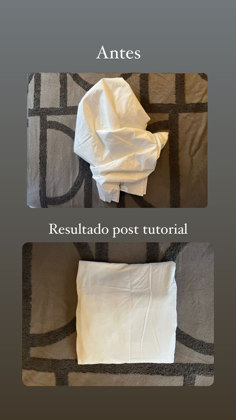 Este, sin dudas, es el tutorial ganador indiscutido de la optimización de espacios. Fácil de hacer y aprender, lo puedes realizar sobre la cama en pocos segundos. Además, al quedar por fuera las fundas de almohadas, estas no se pierden y resultan fáciles de sacar.