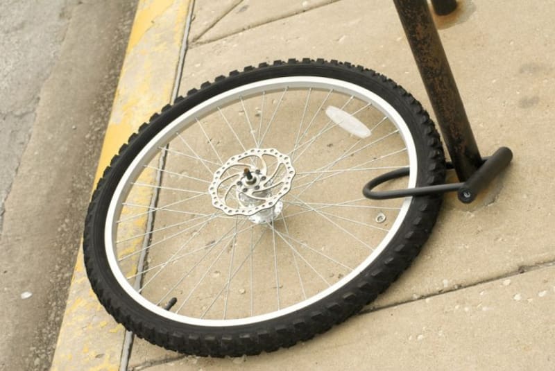 Algo parecido sucede cuando se encadena solo un lado de la horquilla, especialmente si es la delantera. Ahí el ladrón puede desmontar la rueda y luego simplemente levantar la bicicleta: el candado caerá como un anillo al suelo y el delincuente se puede ir con el conjunto completo.