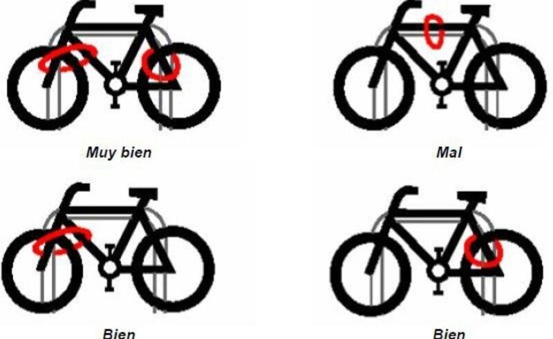Para que esto no pase, la manera más eficiente de usar un candado es que este enganche marco, rueda y bicicletero. Esto, por un lado, hará que soltar la rueda sea inútil para llevarse la bicicleta, y por el otro dará menos espacio para maniobrar con herramientas destructivas.