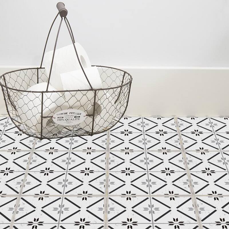 Las baldosas las tapé con una opción que de verdad cambió por completo ese lugar de mi casa: las baldosas de vinilo. Las originales son de color caramelo, con manchas por el paso del tiempo, que rápidamente pasaron al olvido cuando puse estos stickers encima. Son de fácil instalación, lavables y totalmente resistentes. La verdad es que me hice adicto a este lifehack y mi siguiente objetivo es renovar con ellos el baño.