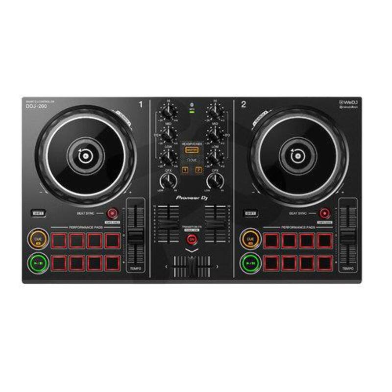 Pioneer DJ cuenta con modelos pensados para bedroom djs, como este mini controlador DDJ-200, de dos bandejas y múltiples funcionalidades.