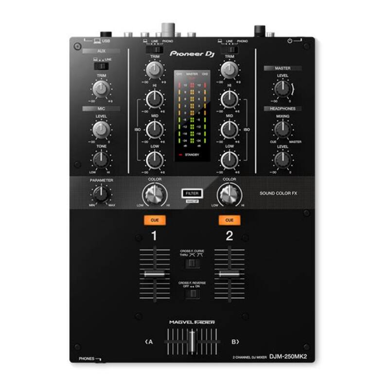 El mixer DJM 250 es uno de los más cotizados entre los Djs, pues es simple de operar y garantiza una salida de audio cálida y de alta calidad, ya sea que se opere con fuentes digitales o analógicas: