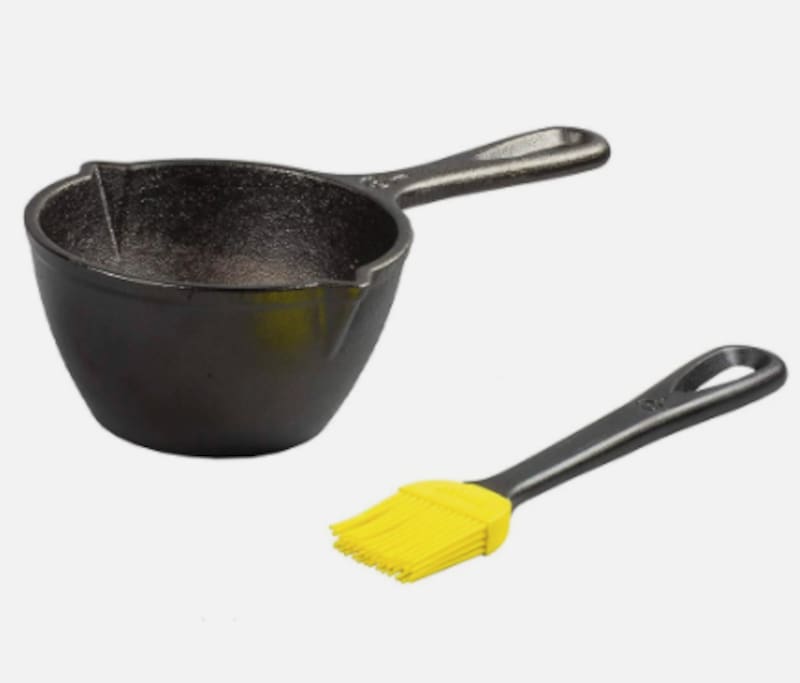 Mini olla para salsas de hierro fundido + pincel de silicona