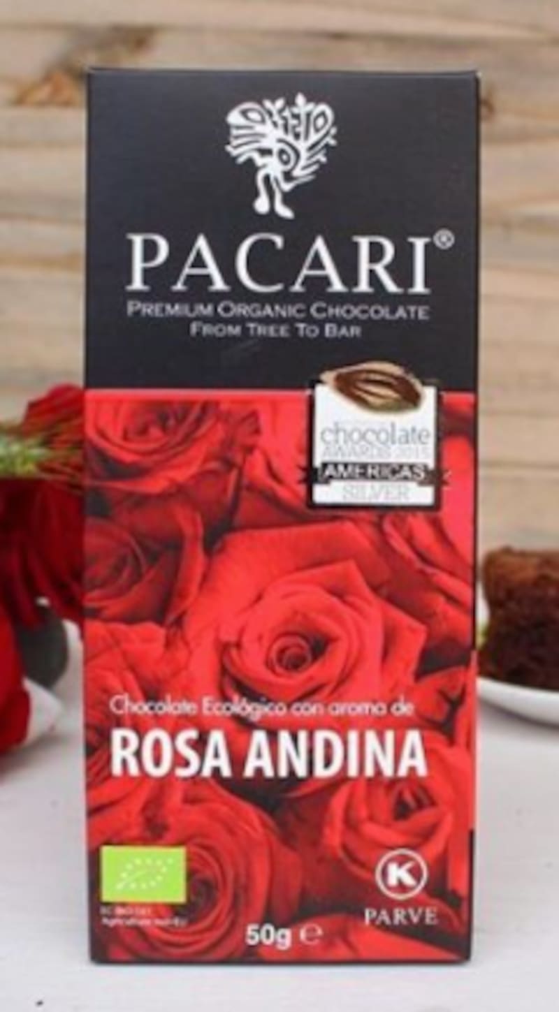Barra de chocolate Pacari con rosa andina (60% de cacao) 50 gr