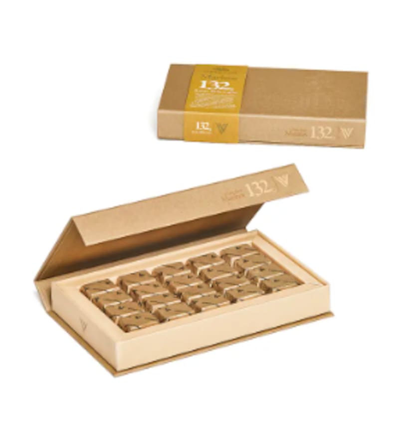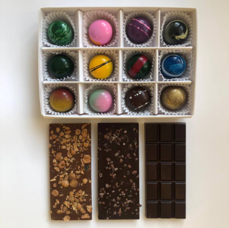 Sus chocolates tiene distintas formas, suaves texturas, colores llamativos y sabores originales. Para obsequiar, una buena idea puede ser esta caja apta para veganos, que está compuesta de 18 bombones premium, entre ellos los inspiración —con chocolate de frambuesa—, bombones galileo —rellenos con praliné de almendras y gianduja de avellana— y bombones macizos, que tienen chocolate semi amargo con 55% de cacao.