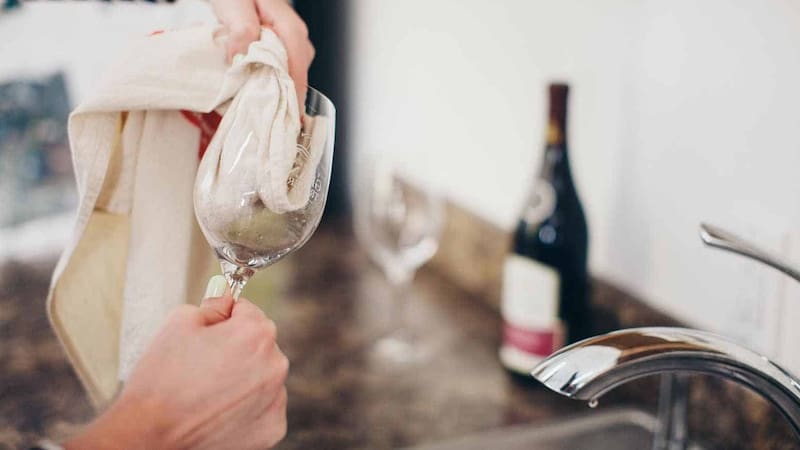 - La técnica de secado de Riedel: en un video de YouTube, el vidriero y empresario austríaco Maximilian Riedel, CEO de la famosa cristalería Riedel, comparte el secreto para secar correctamente una copa. Necesitas dos paños de microfibra, sin pelusas, y que solo uses para pulir tus copas, y una tetera encendida con agua hirviendo. En primer lugar, agarra los dos paños, uno en cada mano, envuelve la base de la copa y frota delicadamente. Luego sigue puliendo el tallo de la copa. Con una de tus dos manos, siempre cubierta por el paño, agarra la copa por su cuerpo, quedando tu palma como base. Con la otra mano, y la ayuda del otro paño, pule toda la superficie. Sin fuerza y siempre con delicadeza. Luego, pon la copa sobre el vapor que sale de la tetera y vuelve a pasarle los paños, hasta que nada de vapor quede en ella. Así, además de seca, quedará brillante.
