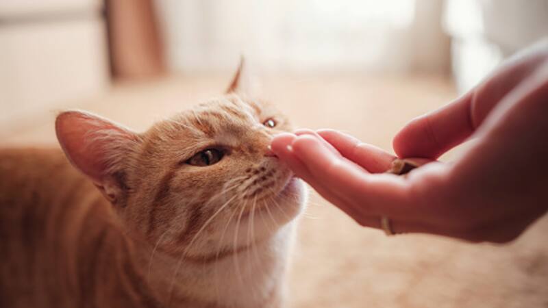 “Por ejemplo, una cucharada de té de crema espesa, un cuarto de tajada de jamón o pequeños trocitos de carne. Eso siempre y cuando el gato esté familiarizado con este tipo de premios”, comenta.