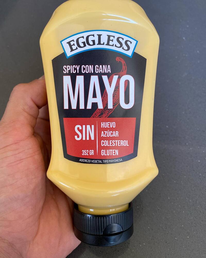 En la misma línea, pero buscando algo más de sabor, me encontré otra variedad de Eggless, pero esta vez en la modalidad “Spicy con gana”. O sea, picante. Y sí, es picante y rica, ideal para darle un toque final a unos tacos de pescado o para preparar unas papas bravas.