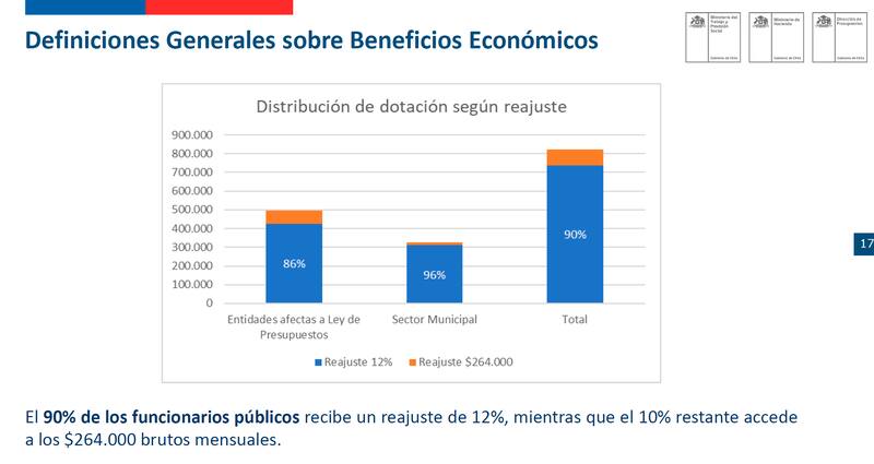 Dado este escenario una cifra que puede entregar un orden de magnitud de cuántos funcionarios públicos existen y de esa manera tener una mayor cuantificación, es el universo de beneficiados por el reajuste del sector público.