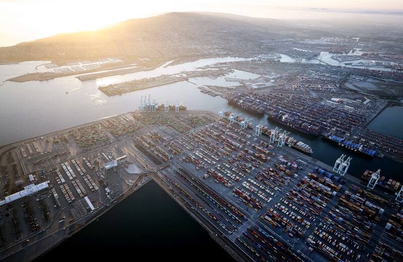 Los puertos de California están al alcance de China y las fábricas que producen grandes volúmenes de productos electrónicos, ropa y una variedad de otros bienes de consumo. Ahí tienen suficiente terreno para albergar docenas de grúas capaces de vaciar grandes barcos, así como extensas terminales para almacenar containers.